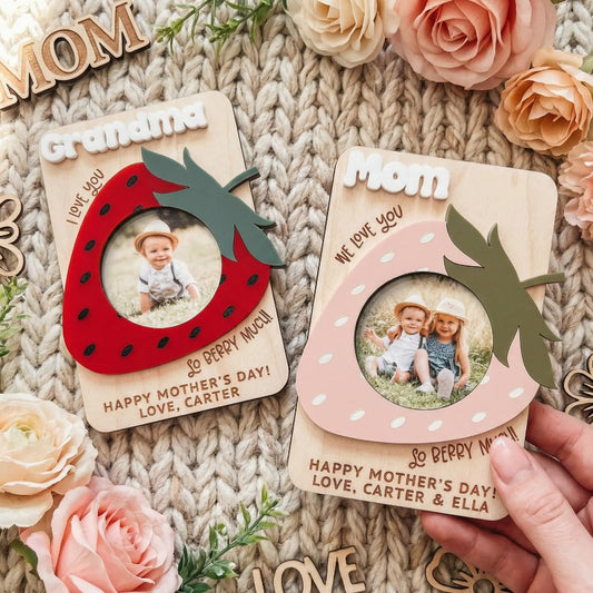 Personalized Strawberry Fridge Photo Magnet, Mother's Day Photo Gift