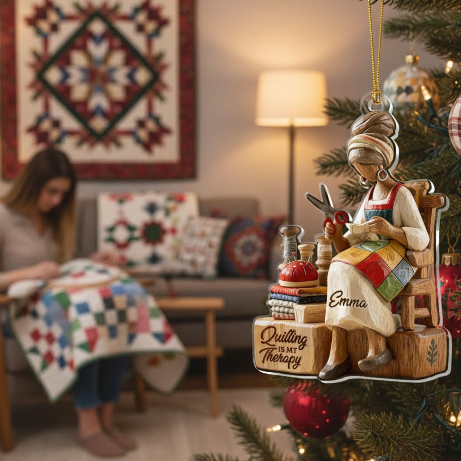 Personalized Quilting Is My Therapy Acrylic Ornament, Christmas Tree Decorations