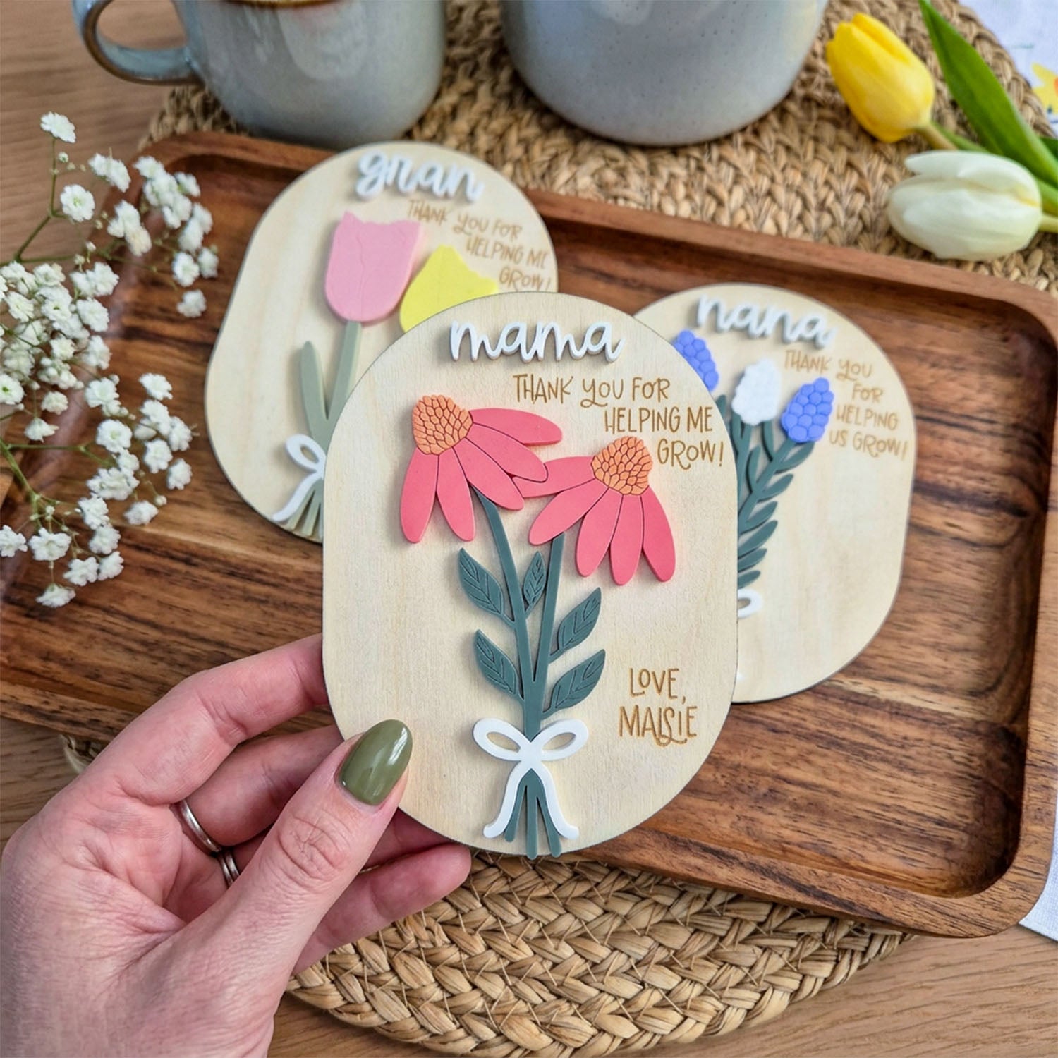 Personalized Quote Floral Wooden Magnet Sign, Thank You For Helping Me Grow Gift, Personalized Mother’s Day Refrigerator Decor